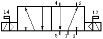 由圖可見,1是進(jìn)氣管,2、4兩個(gè)是出氣管,3、5兩個(gè)是排氣管。當(dāng)12線圈通電時(shí),閥工作在右閥位,進(jìn)氣由1經(jīng)過閥從2出去,管4的氣經(jīng)閥從5排出;當(dāng)14線圈通電時(shí),閥工作在左閥位,進(jìn)氣由1經(jīng)過閥從4出去,管2的氣經(jīng)閥從3排出。