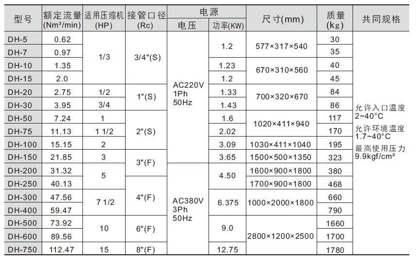 冷凍式空氣干燥機(jī)DH系列