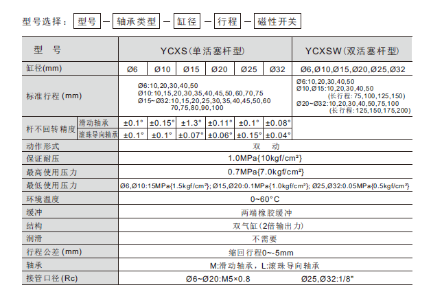雙杠氣缸 YCXS YCXSW系列