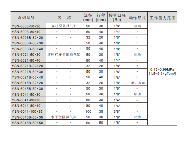 阻擋氣缸 YSN6021系列