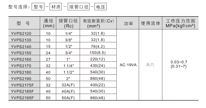 先導式蒸汽二通電磁閥 YVPS系列